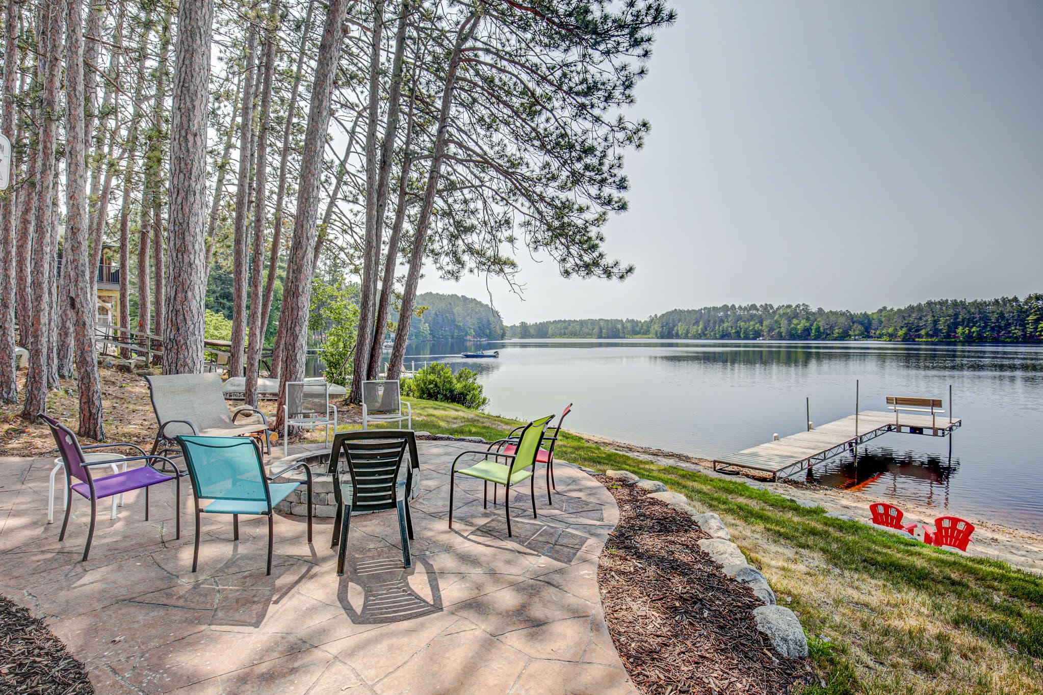 Both the Duplex (sleeps up to 14) and The Lodge (sleeps up to 14) have their own fire pit and beach area as well as their own dock on Somo Lake.